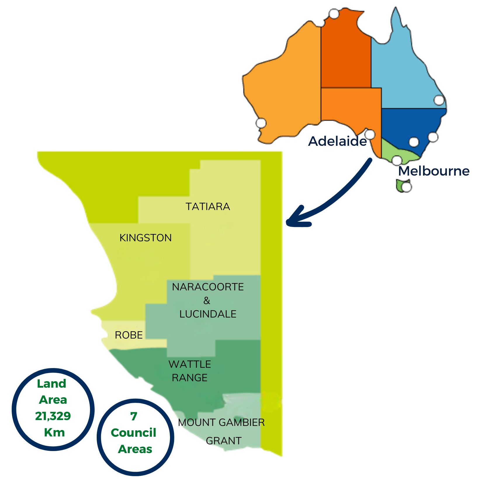 Discover the Limestone Coast The Limestone Coast is a dynamic and diverse region in South Australia, home to more than 66,000 residents and a robust economy built on agriculture, manufacturing, and emerging sectors like tourism and renewable energy. This regional overview—developed in partnership with .id (informed decisions)—is a great example of the insight RDALC can provide: