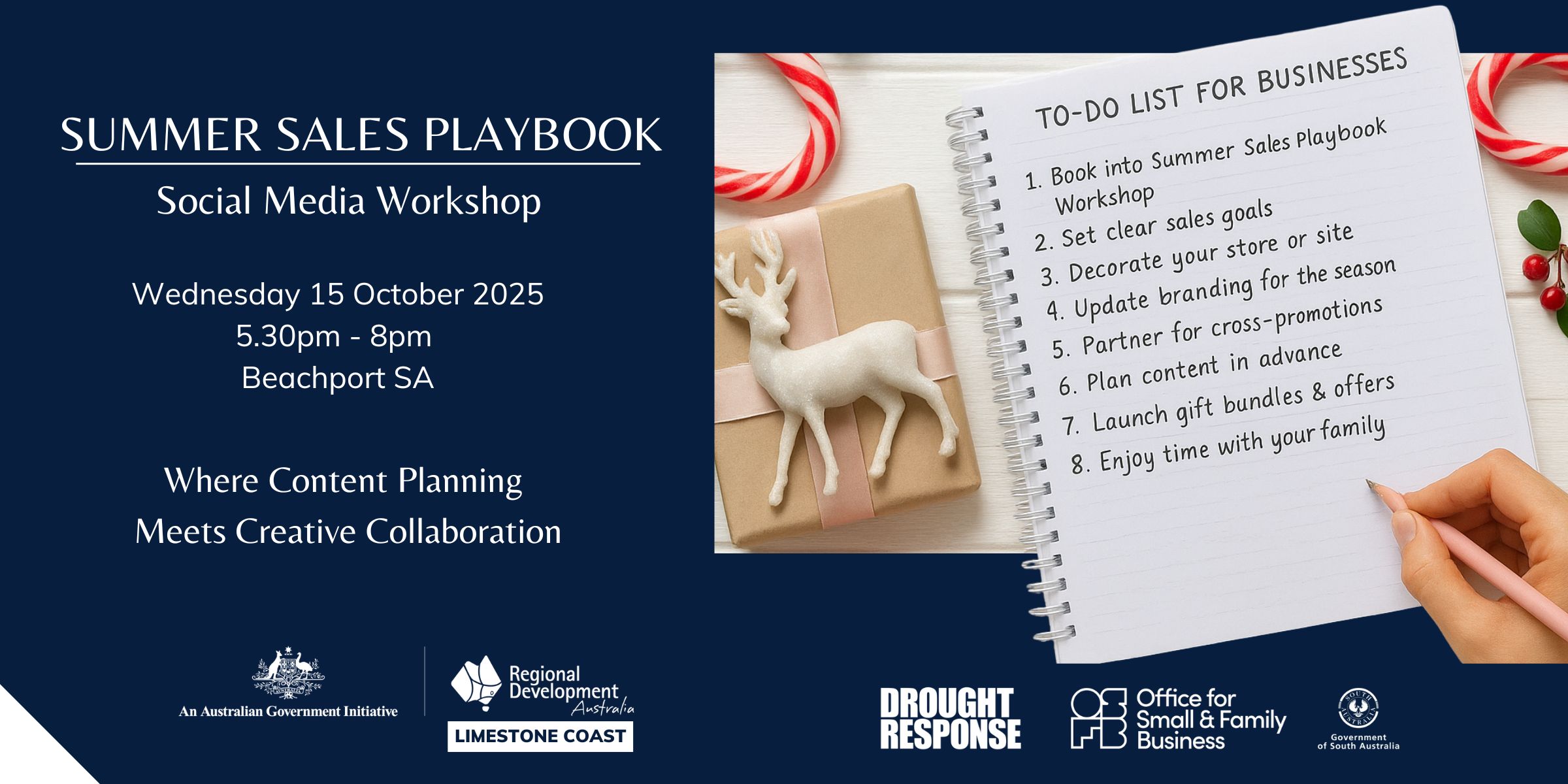 These hands-on sessions will empower local business owners to create compelling content that drives holiday and summer sales. The focus is on clarity, collaboration, and translating ideas into practical marketing action.
